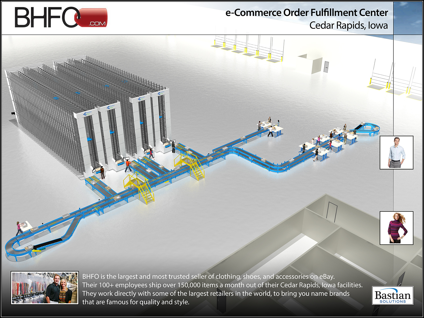 As the largest seller of retail and apparel on eBay, BHFO needed an order fulfillment system that could keep up with its growing number of daily auctions. Working with the Bastian Solutions team, the company chose Perfect Pick, an automated goods-to-person picking system to better utilize available storage space, increase throughput, and reduce picking errors.