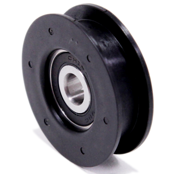 Sheaves are wheels with a flat or grooved edge that transmit rotational force from one shaft to another when connected with a V-belt, o-ring, or gear belt.  Idler sheaves help to prevent belt slippage and position belts away from obstacles. Use flat-face pulley idlers with flat belts, gear belts, or the backside of v-belts.